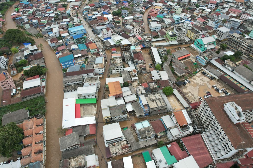 สำรวจระดับน้ำ มุมสูง 29 เมษายน 2568 เวลา 14.00 น. ชุมชนถ้ำผาจม บ้านแม่สาย ต.เวียงพางคำ อ.แม่สาย จ.เชียงราย