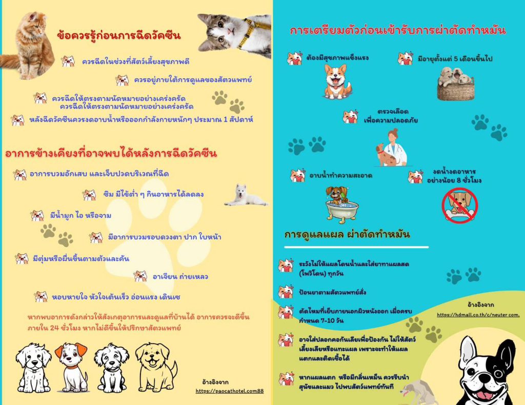 ขอเชิญเจ้าของสุนัขและแมวที่มีอายุสามเดือนขึ้นไปลงทะเบียนและเข้ารับวัคซีนและทำหมันฟรี ตั้งแต่วันนี้จนถึง 30 เมษายน 2567 (ลงทะเบียนโดยสแกนคิวอาร์โค๊ดในภาพ)