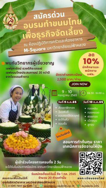 ศูนย์เรียนรู้การพัฒนาสตรีและครอบครัวฯ จังหวัดเชียงราย เปิดรับสมัคร หลักสูตร ขนมไทยเบื้องต้น … เรียน 5 วัน