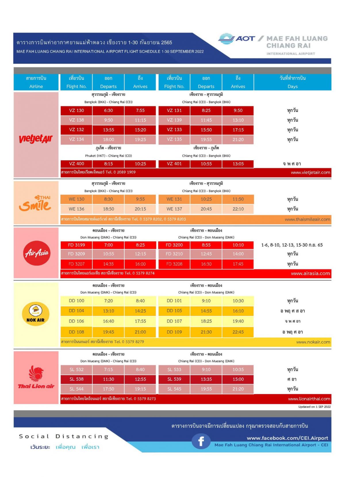 - สายการบินไทยไลอ้อนแอร์ สถานีเชียงราย Tel. 0 5379 8273