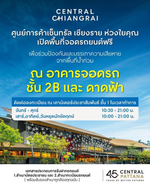 - เดินทางถึงเซ็นทรัลพลาซา เชียงราย เพียง 10 นาที
