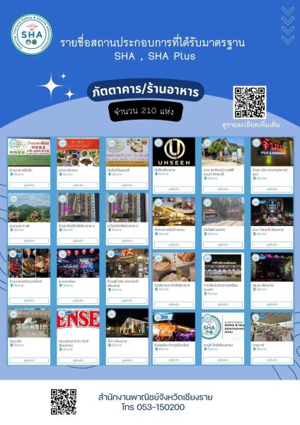 สำนักงานการท่องเทียวและกีฬาจังหวัดเชียงราย ขอเชิญชวนทุกท่านเข้าร่วมการประชุมเชิงปฏิบัติการ “กิจกรรมพัฒนาบุคลากรด้านการท่องเที่ยวสู่มาตรฐานความปลอดภัยด้านสุขอนามัย (SHA) ตามวิถีการท่องเที่ยวแนวใหม่ (NEW NORMAL TOURISM SERVICES)”