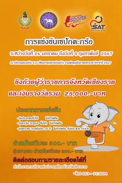 สอบถามเพิ่มเติม สำนักงานการกีฬาแห่งประเทศไทย จังหวัดเชียงราย 053 713 004