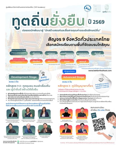 TAT Academy เชิญผู้สนใจสมัครอบรม “ทูตถิ่นยั่งยืนปี 2569”