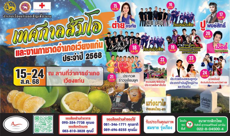 จังหวัดเชียงราย โดยสำนักงานพาณิชย์จังหวัดเชียงราย ขอเชิญชวนสั่งซื้อส้มโอเวียงแก่น เพื่อช่วยเหลือเกษตรกรชาวสวนส้มโอ อำเภอเวียงแก่น จังหวัดเชียงราย