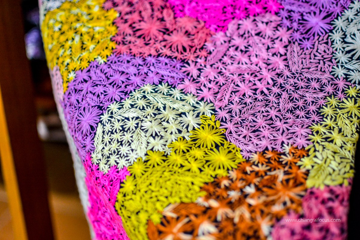 ลวดลายที่ปักลงบนผ้าทุกผืนจะบอกถึงเรื่องราววิถีชาวบ้านบนรากฐานของ”ความพอเพียง” การปักผ้าด้วยมือผู้ปักจะต้องมีสมาธิทั้งกายและใจและความอดทน จึงทำให้ผ้าออกมามีความละเอียดสวยงาม มีคุณค่าในตัวสูง …หากใครชอบงานผ้าศิลปะแนวนี้ อยากได้ผ้าปักมือสวยๆ ลองแวะเวียนไปเยี่ยมชมได้เลย