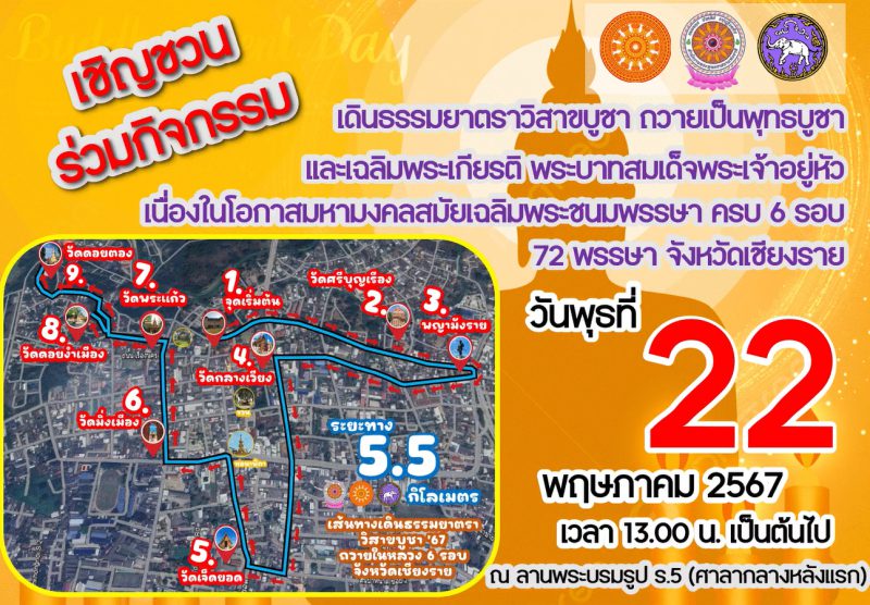 รัฐบาล ร่วมกับมหาเถรสมาคม จัดงาน “วันวิสาขบูชานานาชาติ วันสำคัญสากลของโลก ครั้งที่ 19” ระหว่างวันที่ 19-20 พฤษภาคม 2567 ณ มหาวิทยาลัยมหาจุฬาลงกรณราชวิทยาลัย จังหวัดพระนครศรีอยุธยา ศูนย์ประชุมสหประชาชาติ ถนนราชดำเนินนอก กรุงเทพฯ และพุทธมณฑล จังหวัดนครปฐม เพื่อสืบสานทำนุบำรุงพระพุทธศาสนา และเป็นอีกหนึ่งกิจกรรมเฉลิมพระเกียรติพระบาทสมเด็จพระเจ้าอยู่หัว เนื่องในโอกาสพระราชพิธีมหามงคลเฉลิมพระชนมพรรษา 6 รอบ 28 กรกฎาคม 2567