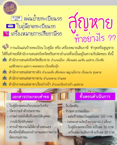 หรือ โทรศัพท์สายด่วน 1584 และสามารถติดตามข่าวสารได้ที่ เพจประมูลทะเบียนสวยเชียงราย