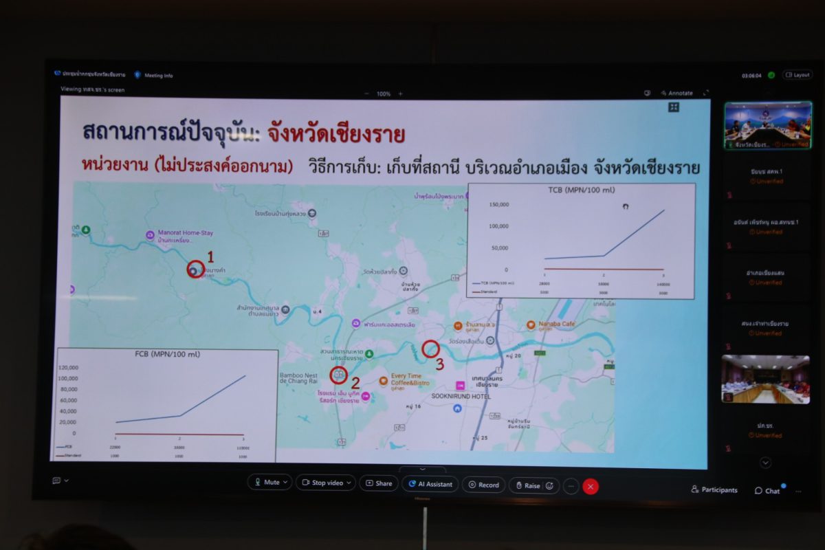 วันที่ 6 เม.ย.68 เวลา 10.00 น. ณ ห้องประชุมพญาพิภักดิ์ ศาลากลางจังหวัดเชียงราย นายชรินทร์ ทองสุข ผู้ว่าราชการจังหวัดเชียงราย เป็นประธานการประชุมฯ เพื่อหาแนวทางการแก้ไขปัญหาคุณภาพน้ำกก หลังรับทราบผลการตรวจคุณภาพน้ำในพื้นที่จังหวัดเชียงราย โดยนายอาวีระ ภัคมาตร์ ผู้อำนวยการสำนักงานสิ่งแวดล้อมและควบคุมมลพิษที่ 1 (เชียงใหม่) ได้รายงานผลจากการลงพื้นที่ตรวจสอบและเก็บตัวอย่างน้ำ เพื่อตรวจวิเคราะห์คุณภาพน้ำผิวดิน การตรวจวัดโลหะหนัก พร้อมด้วยไซยาไนด์ เพื่อหาความปนเปื้อนของสารมลพิษในแหล่งน้ำของแม่น้ำกก เมื่อวันที่ 24 มีนาคม 2568 ว่า แม่น้ำกกอยู่ในเกณฑ์ ”พอใช้ ถึง เสื่อมโทรม“ โดยค่าความสกปรกในรูปสารอินทรีย์เกินมาตรฐาน บริเวณบ้านโป่งนาคำ ต.ดอยฮาง อ.เมืองเชียงราย จ.เชียงราย