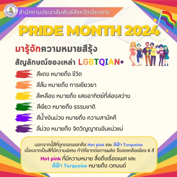 ทั้งนี้ เดือนมิถุนายนของทุกปีถือเป็น Pride Month หรือเดือนแห่งความภาคภูมิใจของผู้มีความหลากหลายทางเพศ จังหวัดเชียงรายร่วมกับมูลนิธิเอ็มพลัส สาขาเชียงราย ได้ กำหนดจัดกิจกรรม Chiang Rai Pride Month 2025 ขึ้นในวันอาทิตย์ที่ 22 มิถุนายน 2568 ณ ลานกิจกรรมหน้าศาลากลางจังหวัดเชียงรายหลังเก่า และลานกาสะลอง ศูนย์การค้าเซ็นทรัล เชียงราย