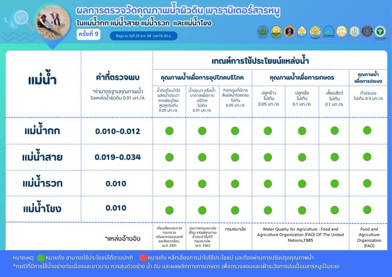 สำหรับระดับน้ำที่สถานีสะพานพ่อขุนเม็งรายมหาราช อ.เมือง จ.เชียงราย ที่ระดับ 3.67 ม. (ตลิ่งที่ 6.00 ม.) กำลังเพิ่มขึ้นชม.ละ 8 ซม. หากระดับน้ำทางแม่อายเพิ่มขึ้นอย่างต่อเนื่อง จะทำให้แม่น้ำกก ในเมืองเชียงรายเพิ่มขึ้นสูงและอาจจะล้นตลิ่งในพื้นที่ลุ่มต่ำได้ในคืนนี้เช่นกัน