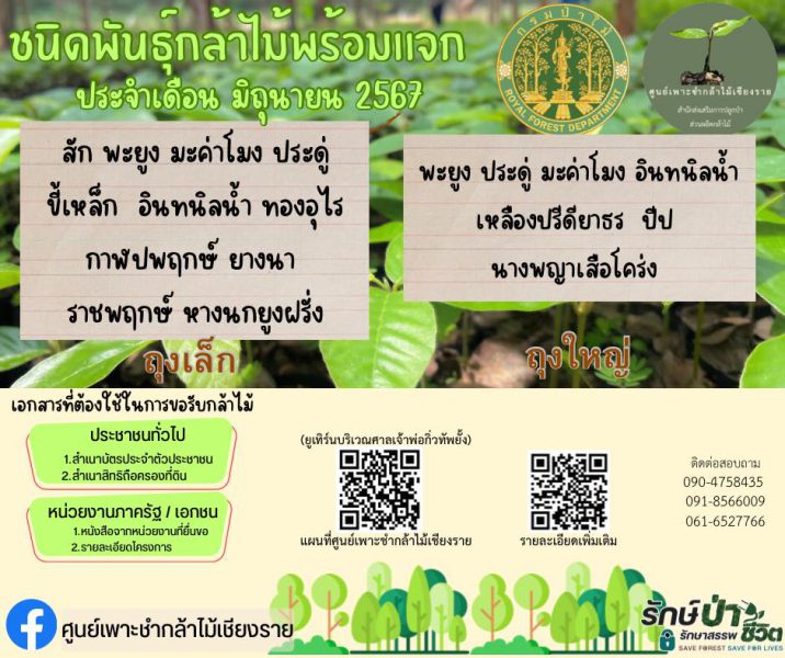 สอบถามข้อมูลเพิ่มเติม : สถานีเพาะชำกล้าไม้จังหวัดเชียงราย โทร. 053-779214