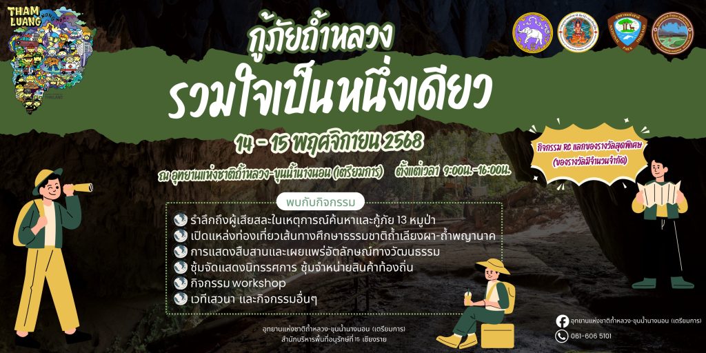 อุทยานแห่งชาติถ้ำหลวง-ขุนน้ำนางนอน ขอเชิญร่วมงาน “กู้ภัยถ้ำหลวง รวมใจเป็นหนึ่งเดียว”