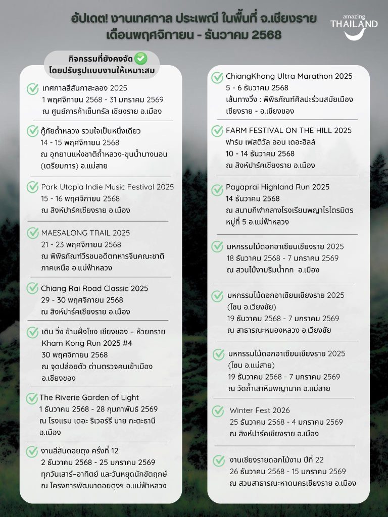 อัปเดต! งานเทศกาล ประเพณี ในพื้นที่ จ.เชียงราย เดือนพฤศจิกายน 2568