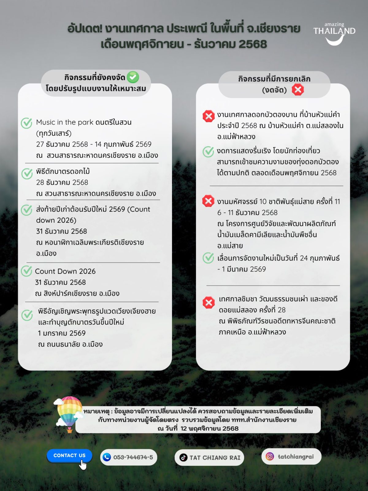 รวบรวมข้อมูลโดย ททท.สำนักงานเชียงราย ณ วันที่ 12 พฤศจิกายน 2568