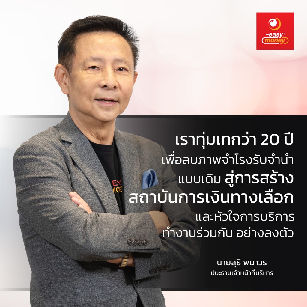 “เราทำงานหนักมากกว่า 20 ปี เพื่อลบภาพจำของโรงรับจำนำแบบเดิม และสร้างสถาปัตยกรรมทางการเงินใหม่ ที่ให้ความสำคัญกับทั้งคนและเทคโนโลยี… เทคโนโลยีของเราจะไม่ใช่สิ่งที่มาทดแทน แต่เป็นพลังที่ช่วยให้คนของเราดูแลลูกค้าได้ดีที่สุด”