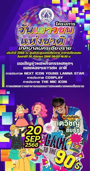 วันศุกร์ที่ 21 พฤศจิกายน 2568 เทศบาลนครเชียงรายโดย นายวันชัย จงสุทธานามณี นายกเทศมนตรีนครเชียงราย มุ่งขับเคลื่อนเมืองสู่ “นครแห่งความสุข” พร้อมส่งเสริมศักยภาพเยาวชนในด้านการท่องเที่ยว