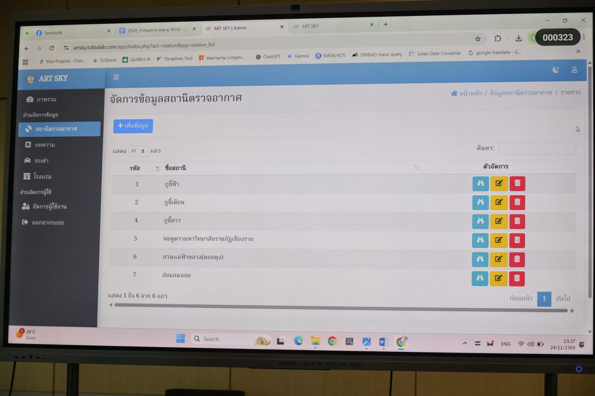 โดยการประชุมในครั้งนี้ ทางทีมวิจัยได้นำเสนอเว็บไซต์ที่มีชื่อว่า Art Sky สามารถดูข้อมูลล้วงหน้าในการวางแผนเพื่อดูดาว