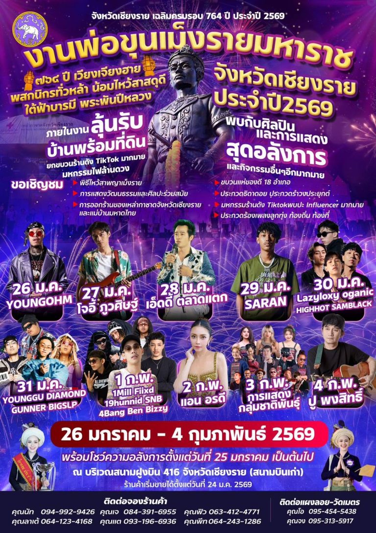 ขอเชิญเที่ยวงานพ่อขุนเม็งรายมหาราช และงานกาชาด ประจำปี 2569