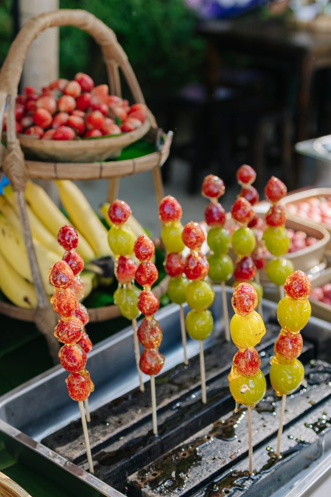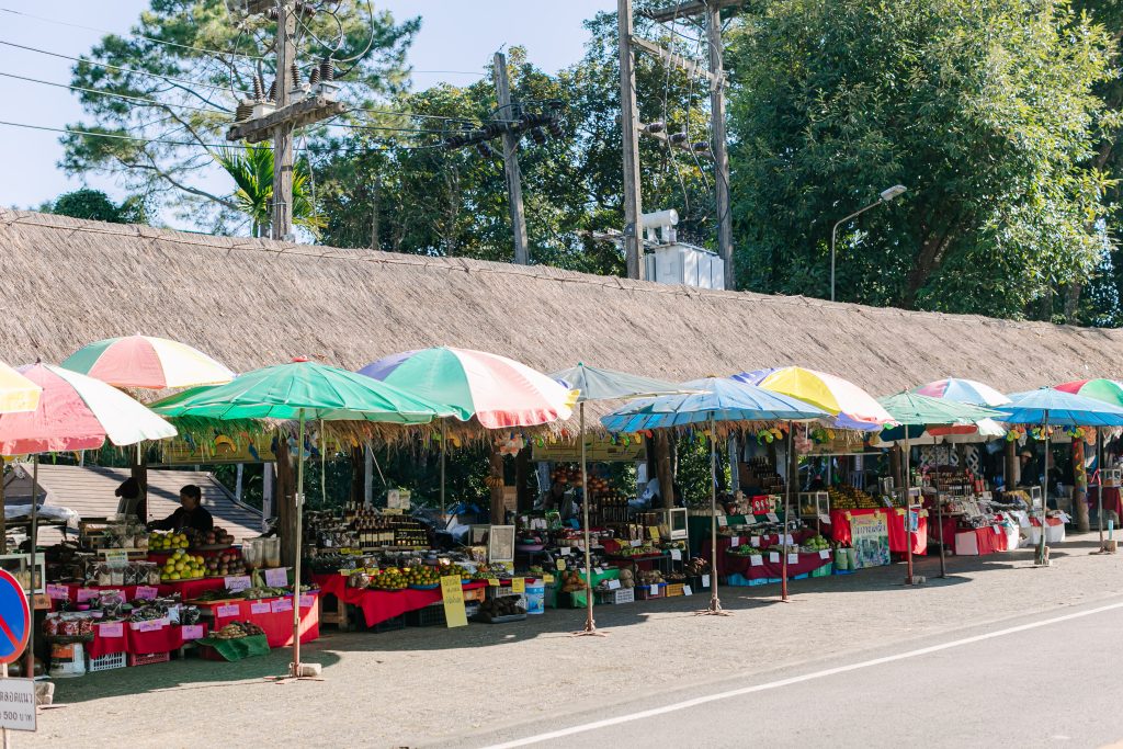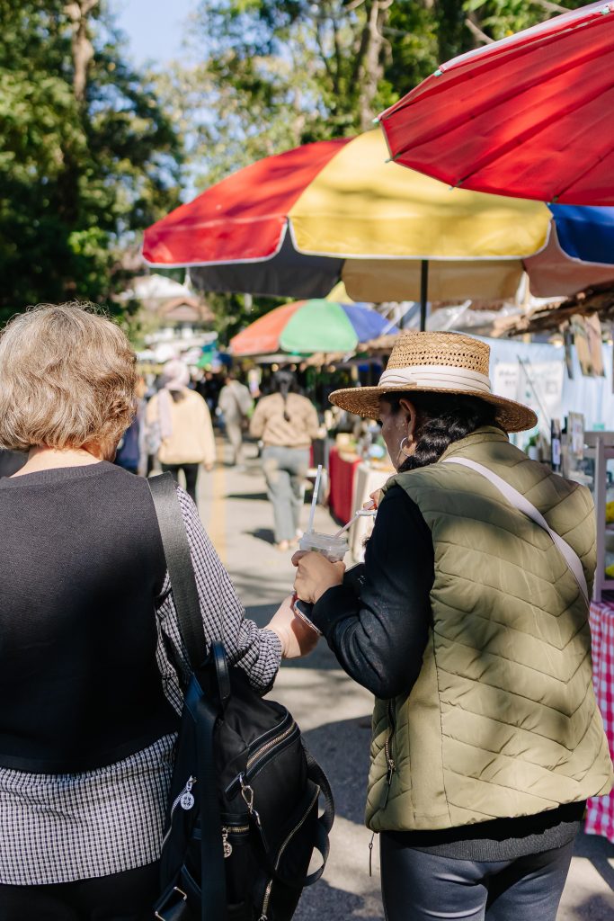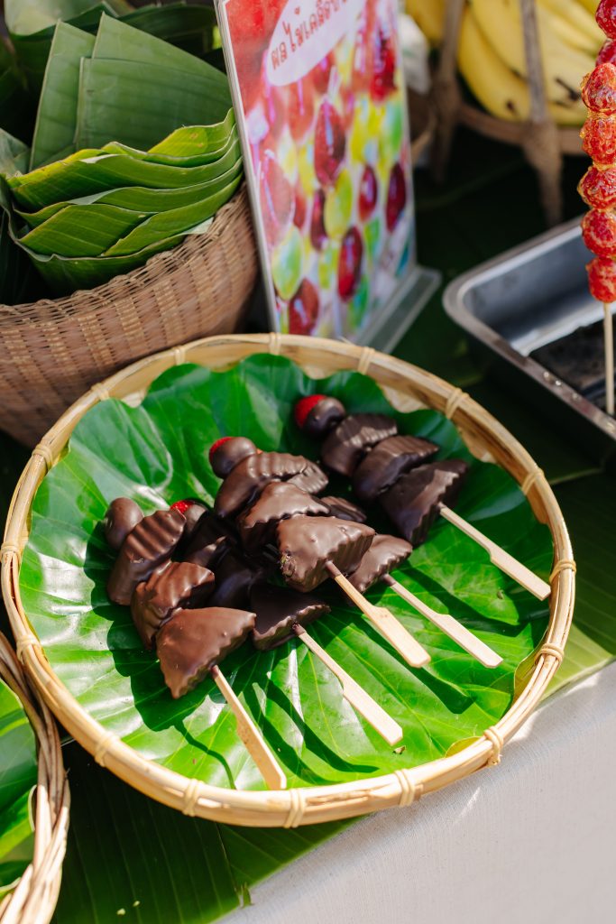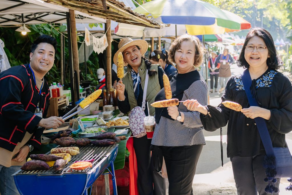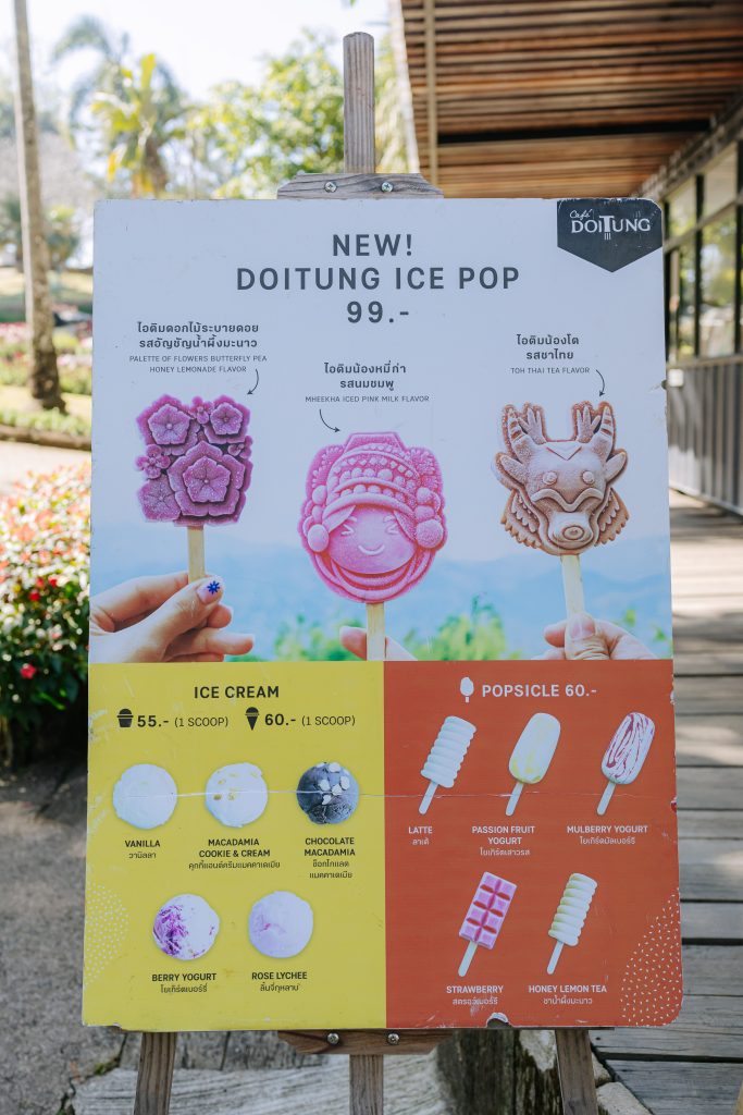 4.) ถนนคนเดินดอยตุง รวมงานหัตถกรรมเสื้อผ้า กระเป๋าทอมือ อาหารพื้นถิ่น และเมนูพิเศษ เช่น พิซซ่าหมูดำ ข้าวซอย น้ำเงี้ยว น้ำพริกหนุ่ม รวมถึงไอศกรีม Soft Serve จากวัตถุดิบที่ปลูกบนดอยตุง