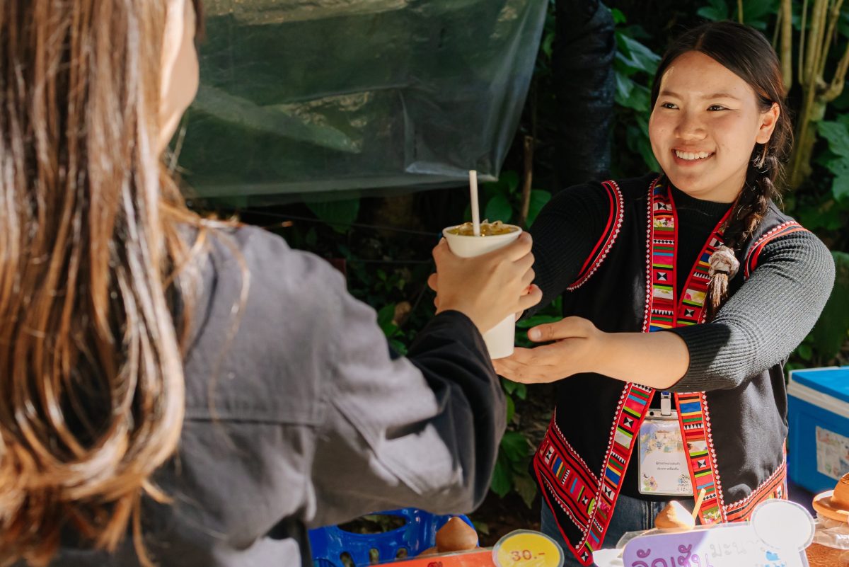 “เทศกาลยังคงให้ความสำคัญกับการเป็น งานปลอดคาร์บอน (Carbon Neutral Event) ผ่านการใช้บรรจุภัณฑ์ที่เป็นมิตรต่อสิ่งแวดล้อม ลดการใช้พลาสติก จัดการขยะอย่างเป็นระบบ และใช้ Reusable Container ภายในงาน เป็นการสืบสานแนวคิด “การพัฒนาเพื่อความยั่งยืน” และสำหรับปีนี้ ไฮไลต์พิเศษคือ คาแรกเตอร์ “พี่โต” และ “หมานหมาน” ผลงานสร้างสรรค์ร่วมกับทีมนักวิจัยจากมหาวิทยาลัยแม่ฟ้าหลวง ถ่ายทอดเรื่องราวการอนุรักษ์ธรรมชาติและวัฒนธรรมในรูปแบบน่ารักร่วมสมัย รวมถึงกิจกรรมมากมายที่เชื่อมโยงศิลปะ วัฒนธรรม และวิถีชีวิตชนเผ่าในพื้นที่”