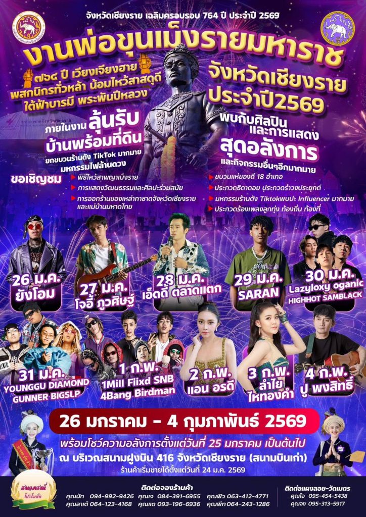 ขอเชิญเที่ยวงานพ่อขุนเม็งรายมหาราช และงานกาชาด ประจำปี 2569