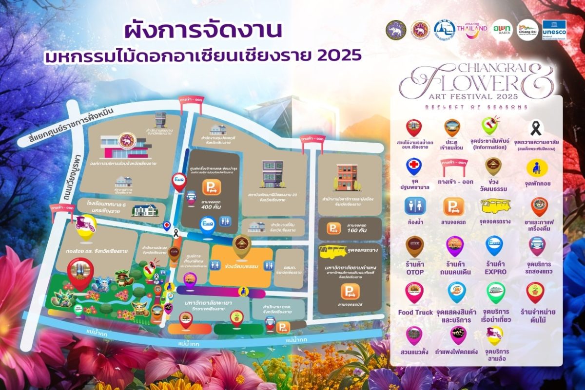 เส้นทางการเดินรถเข้า-ออก บริเวณงาน “มหกรรมไม้ดอกอาเซียนเชียงราย 2025”