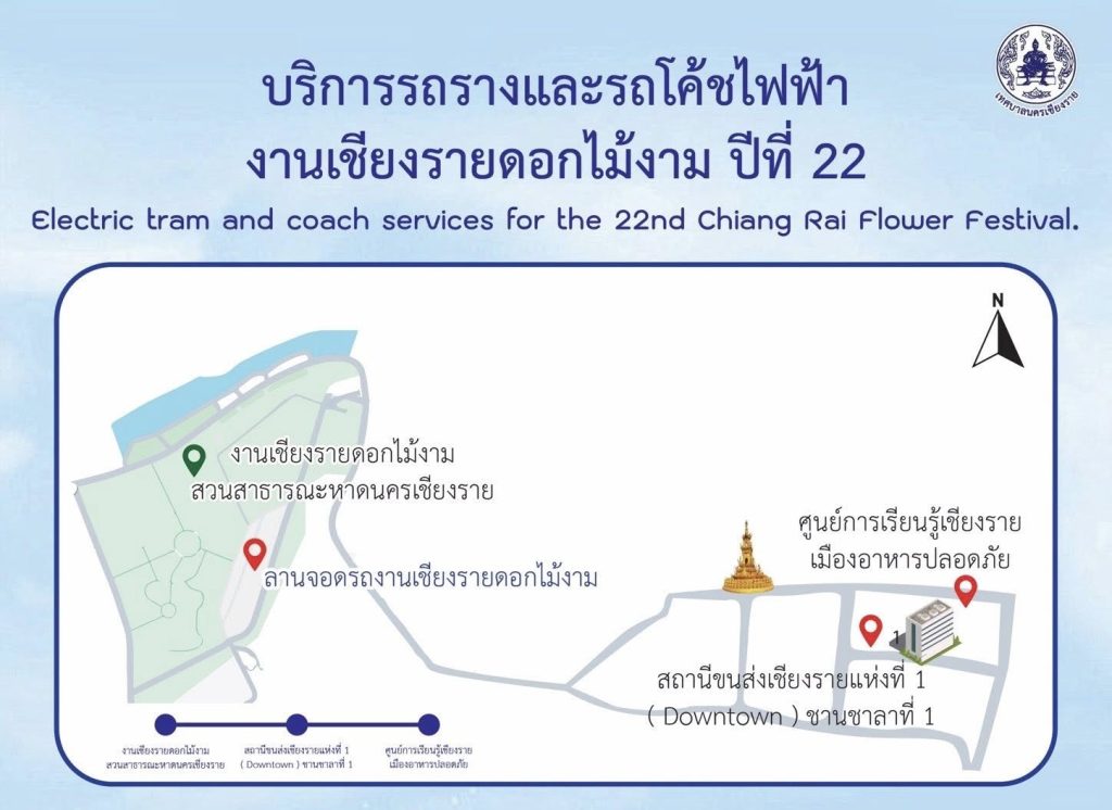 ฟรี!! รถรางและรถโค้ชไฟฟ้านำเที่ยว งานเชียงรายดอกไม้งาม ปีที่ 22