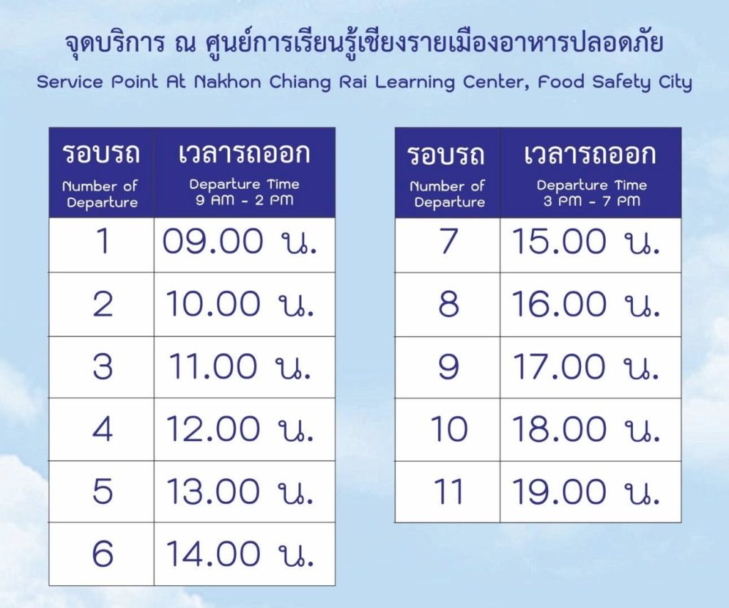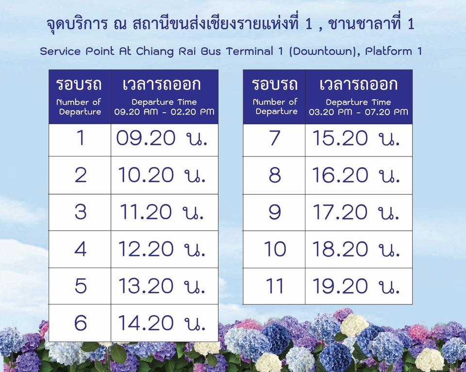 2. สถานีขนส่งเชียงรายแห่งที่ 1 (Downtown) / เวลา 09.20 น. – 19.20 น.