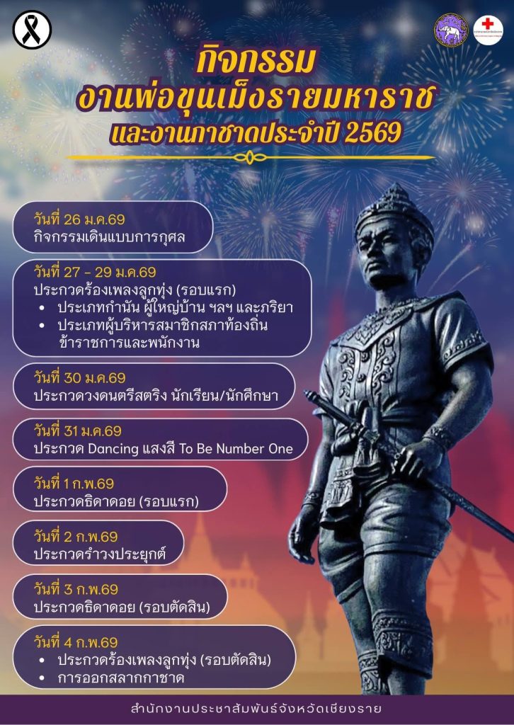 กำหนดการกิจกรรมในงานพ่อขุนเม็งรายมหาราช และงานกาชาด ประจำปี 2569