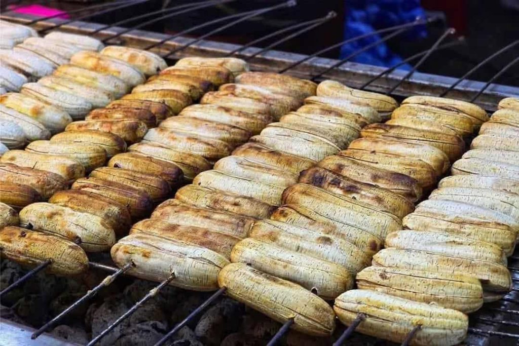 กล้วยปิ้งร้อนๆ ย่างด้วยเตาหินลาวา ราดด้วยน้ำซอสสูตรเด็ดไม่เหมือนใคร