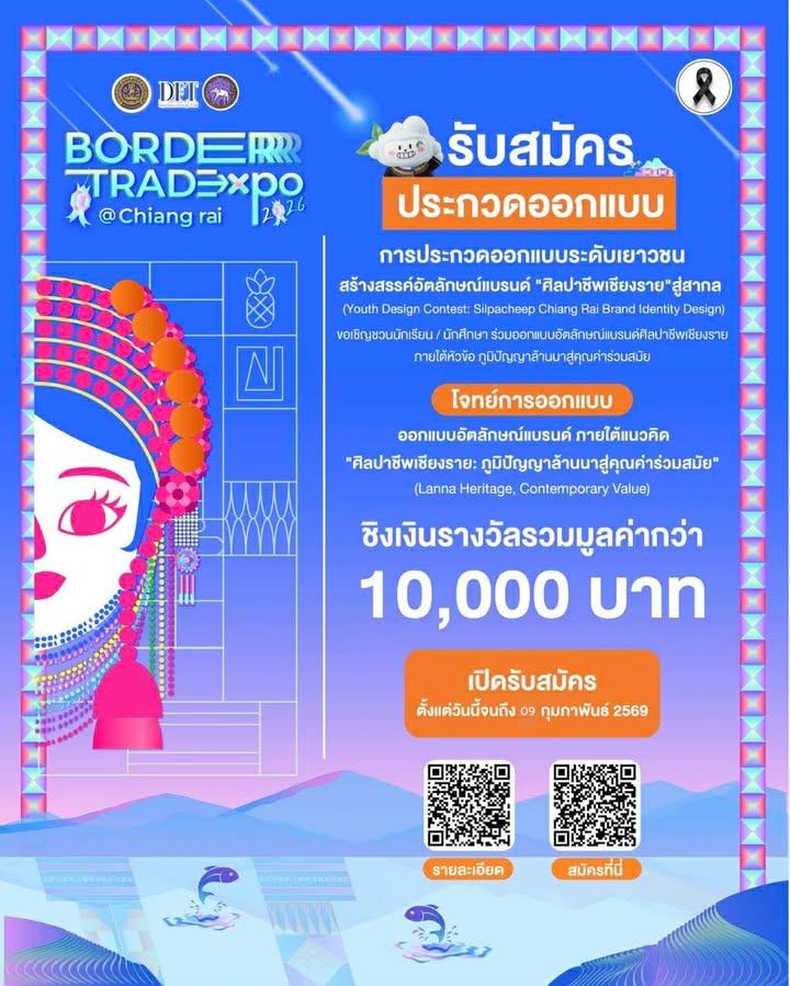 เชิญชวนประกวดร้องเพลงและออกแบบอัตลักษณ์แบรนด์ ชิงเงินรางวัลกว่า 10,000 บาท ในงาน Border Trade Expo 2026 @Chiang Rai