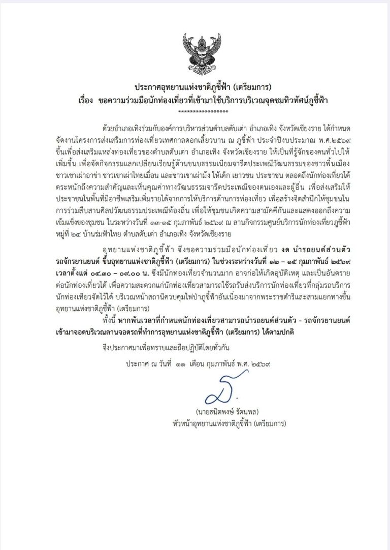 ตั้งแต่วันที่ 12 กุมภาพันธ์ 2569 เป็นต้นไป