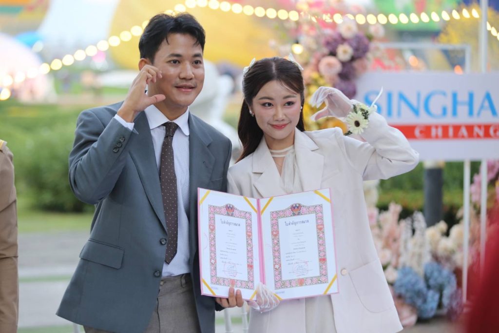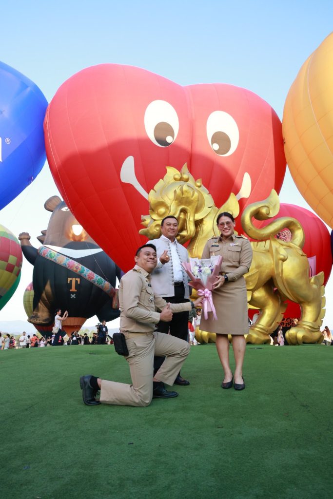 ในพิธีได้รับเกียรติจาก ชูชีพ พงษ์ไชย ผู้ว่าราชการจังหวัดเชียงราย ร่วมเป็นสักขีพยานและกล่าวอวยพรแก่คู่สมรส ให้ครองรักมั่นคงและร่วมกันสร้างครอบครัวที่อบอุ่น โดยภาพคู่บ่าวสาวจากกระเช้าบอลลูนที่โบกมือทักทายเหนือผืนฟ้า สร้างความประทับใจให้แก่นักท่องเที่ยวและผู้ร่วมงานจำนวนมาก