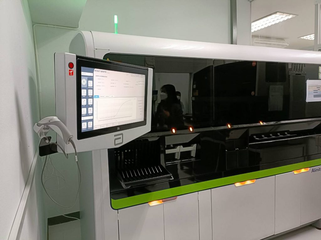 วันนี้ 23 ธ.ค 64 เวลา 08.30 น. นพ.สมศักดิ์ อุทัยพิบูลย์ รองผู้อำนวยการฝ่ายการแพทย์ โรงพยาบาลเชียงรายประชานุเคราะห์ ร่วมด้วย ดร.สมหญิง พรหมโส Business Development Manager บริษัท แอ๊บบอต โมเลคูลาร์ พร้อมคณะห้องปฏิบัติการกลุ่มงานเทคนิคการแพทย์รพ.เชียงรายฯคณะห้องปฏิบัติการกลุ่มงานเทคนิคการแพทย์ รพ.เชียงรายฯ รองผู้อำนวยการ ฝ่ายการแพทย์เป็นประธานในพิธีเปิดการติดตั้งเครื่องวิเคราะห์อัตโนมัติเต็มรูปแบบ Alinity m เครื่องที่ 100 ของ เอเชีย แปซิฟิก และเป็นเครื่องแรกของภาคเหนือ ที่ได้มาติดตั้งที่ รพ.เชียงรายประชานุเคราะห์เพื่อส่งเสริมให้ห้องปฏิบัติการฯได้เพิ่ม การบริการจากเดิมที่มีอยู่ ให้ได้ใช้เครื่อง Alinity m เพิ่มเติม เท่ากับทางโรงพยาบาลจะสามารถเพิ่มการบริการ ให้ทางห้องปฏิบัติการฯ เครืองนี้ใช้ประเมินผลเลือด ผลโควิด19 ได้ไวขึ้น ขยายการบริการ ห้องแลป ทำงานได้สะดวกสบายขึ้น ทางแพทย์สามารถได้รับผลการทดสอบไวขึ้น และคนไข้ได้รับการบริการที่รวดเร็วมากขึ้น