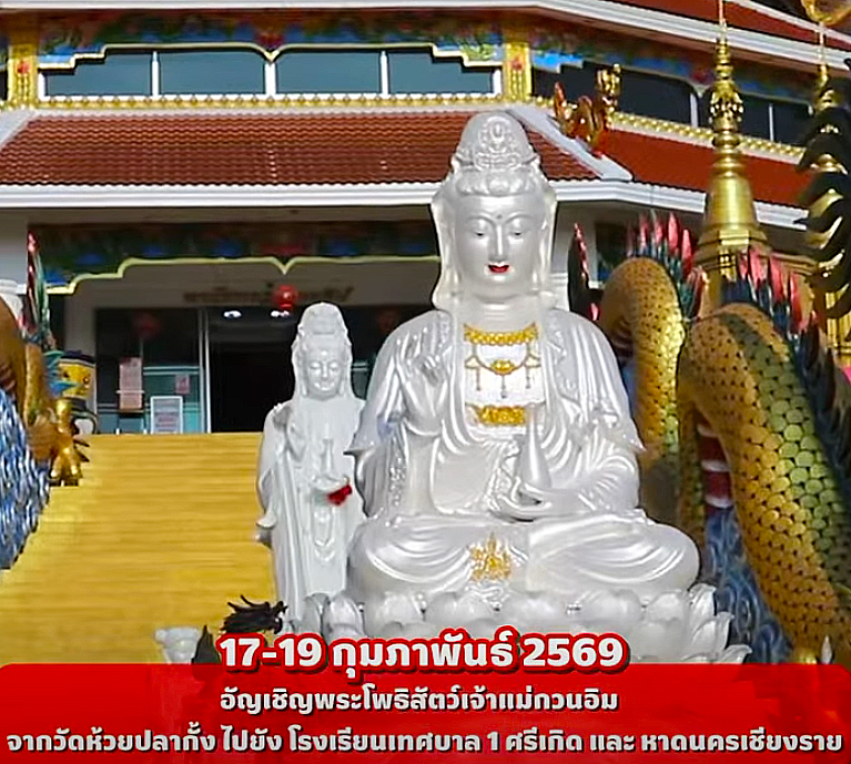 • เวลา 13.30 น. พิธีอัญเชิญพระโพธิสัตว์กวนอิมกลับวัดห้วยปลากั้ง
