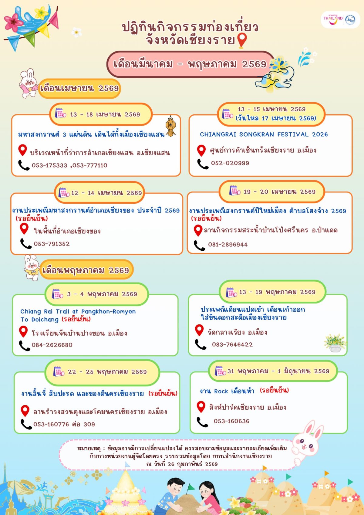 รวบรวมข้อมูลโดย ททท.สำนักงานเชียงราย ณ วันที่ 26 กุมภาพันธ์ 2569