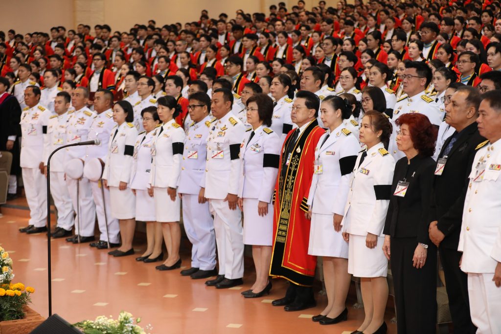 เวลา 09.30 นาฬิกา รถยนต์พระที่นั่งเสด็จพระราชดำเนินถึงหอประชุม ดุริยางค์บรรเลงเพลงสรรเสริญพระบารมี มีศาสตราจารย์พิเศษวันชัย ศิริชนะ นายกสภามหาวิทยาลัย และผู้ช่วยศาสตราจารย์มัชฌิมา นราดิศร อธิการบดี พร้อมด้วยผู้แทนผู้บริหาร คณาจารย์ พนักงาน และนักศึกษา รวมทั้งรองผู้ว่าราชการจังหวัดเชียงราย รองผู้บัญชาการมณฑลทหารบกที่ 37 และรองผู้บังคับการตำรวจภูธรจังหวัดเชียงราย เฝ้าทูลละอองพระบาทรับเสด็จ