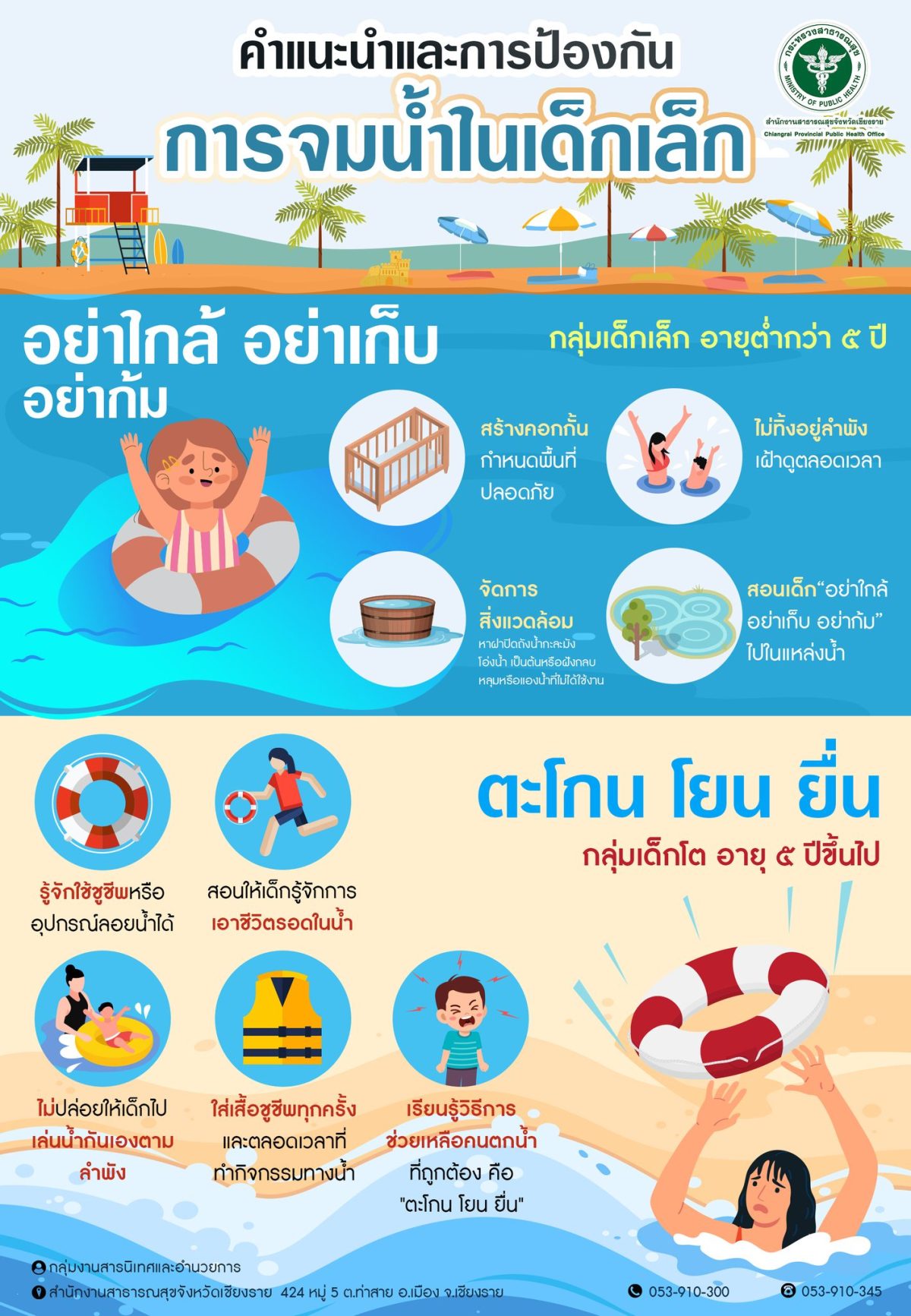 สสจ.เชียงราย เตือน! เที่ยวหน้าร้อน เล่นน้ำอย่างปลอดภัย ห่างไกลการจมน้ำ