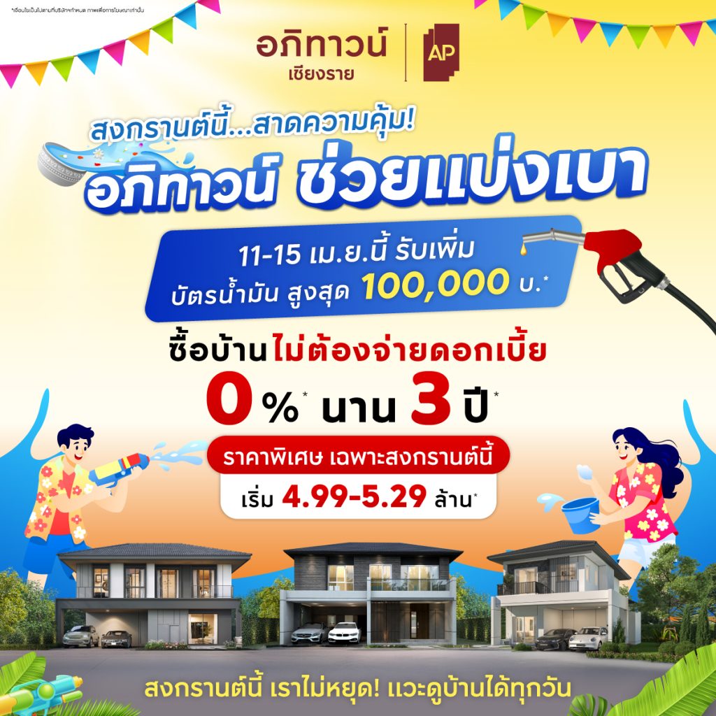 สงกรานต์นี้…ชวนมาสาดความคุ้ม “อภิทาวน์ ช่วยแบ่งเบาค่าใช้จ่าย*” ที่โครงการ อภิทาวน์ เชียงราย