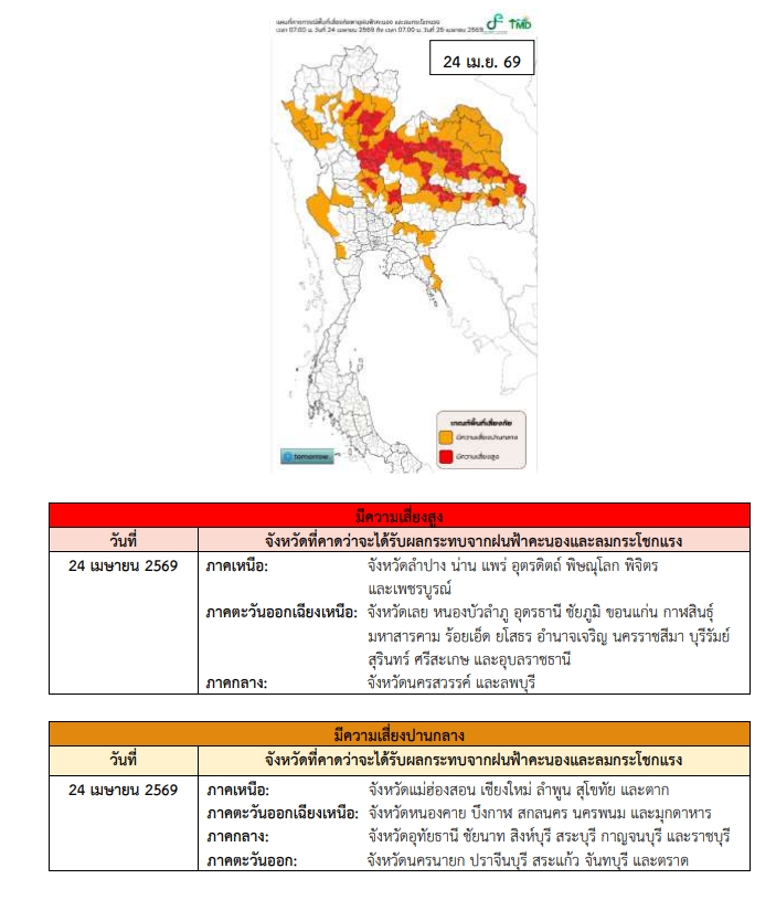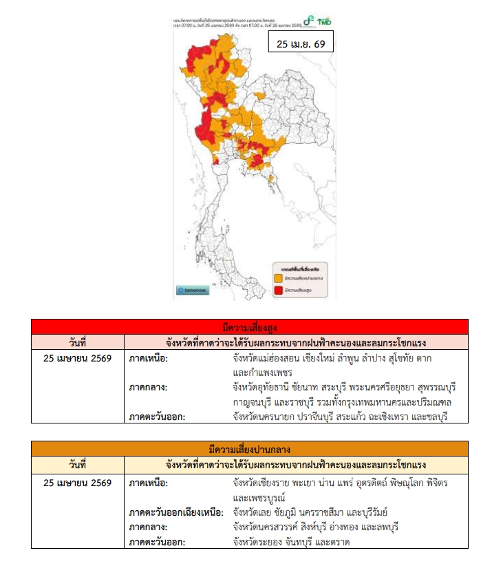 เรื่อง พายุฤดูร้อนบริเวณประเทศไทยตอนบน (มีผลกระทบตั้งแต่วันที่ 23-25 เมษายน 2569) ฉบับที่ 3 (35/2569)