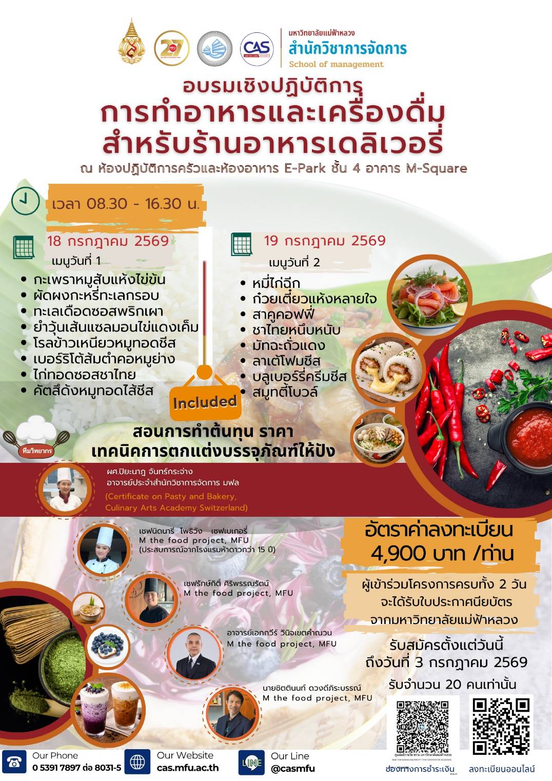 • สถานที่: ห้องปฏิบัติการครัวและห้องอาหาร E-Park ชั้น 4 อาคาร M-Square