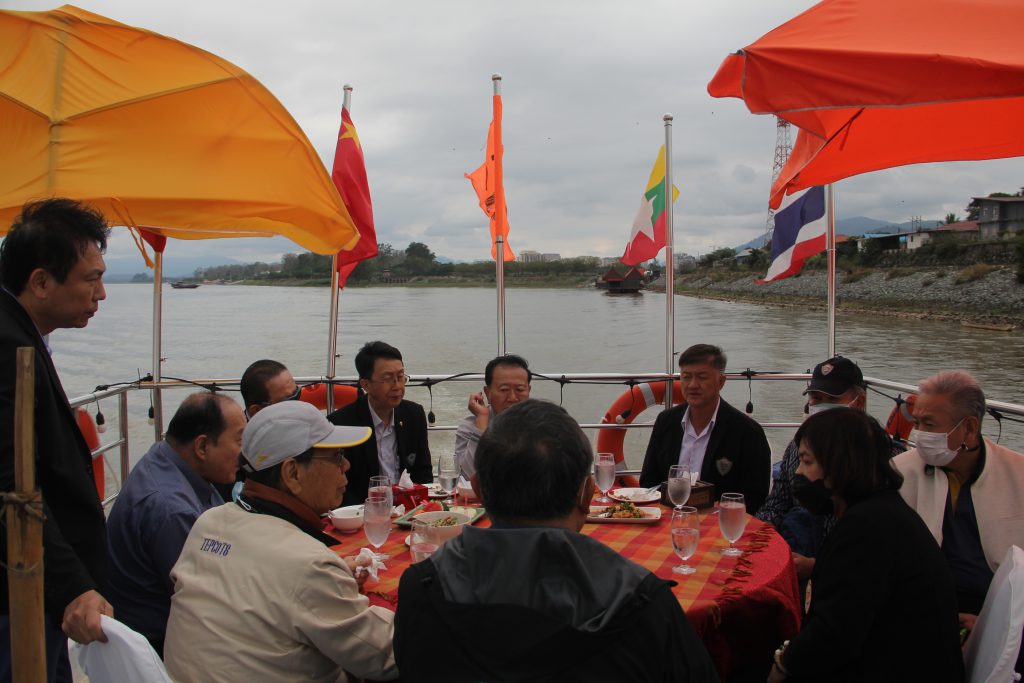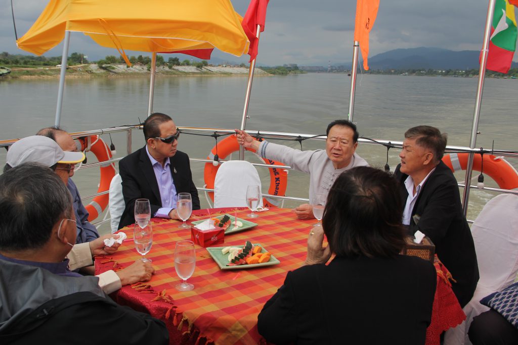 จากนั้นได้เดินทางต่อไปยัง สามเหลี่ยมทองคำ อำเภอเชียงแสน จังหวัดเชียงราย ลงเรือกาสะลองคำ 2 ของ บริษัท แม่โขง เดลต้า ทราเวล เอเจนซี่ จำกัด เพื่อศึกษาเส้นทางการค้า ชายแดน ผ่านช่องทางการขนส่งทางเรือผ่านทางแม่น้ำโขง ซึ่งทางหอการค้าไทย จะได้นำข้อมูล ต่างๆ ที่ได้รับในการลงพื้นที่ในครั้งนี้ เข้าหารือในที่ประชุมและหาแนวทางแก้ไขเพื่อกระตุ้นเศรษฐกิจทางด้านการค้าและการท่องเที่ยวต่อไป
