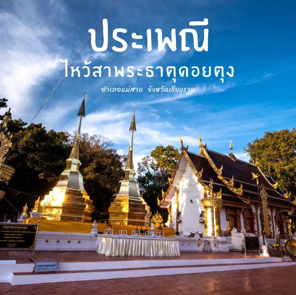 สำหรับประเพณีนมัสการและสรงน้ำพระธาตุดอยตุง จัดขึ้นเป็นประจำทุกปี ในวันเพ็ญขึ้น 15 ค่ำเดือน 4 หรือเดือน 6 เหนือของทุกปี เพื่อการสืบสาน รักษา ต่อยอด และอนุรักษ์เผยแผ่ส่งเสริมวัฒนธรรมประเพณีของเหล่าพุทธศาสนิกชนให้มีความมั่นคงและยั่งยืน เป็นมรดกที่สำคัญของชาติสืบไป อีกทั้งเป็นทุนทางวัฒนธรรมของท้องถิ่นอีกด้วย