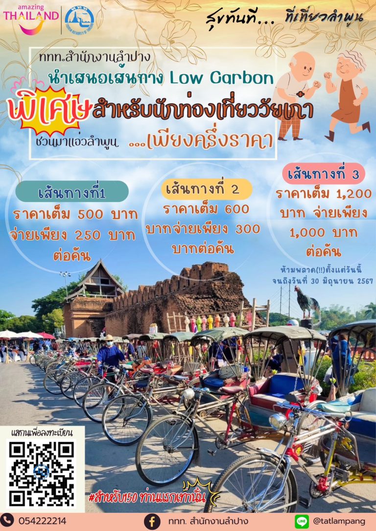 23 เม.ย. 2024 963 ททท.สำนักงานลำปาง ชวนเที่ยวเส้นทาง Low Carbon แอ่วลำพูน.. เพียงครึ่งราคา!!