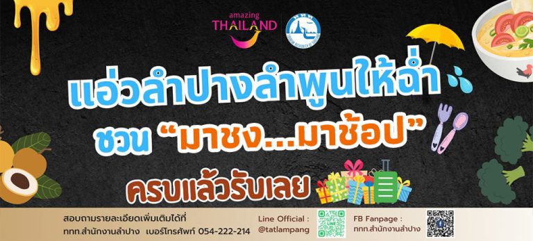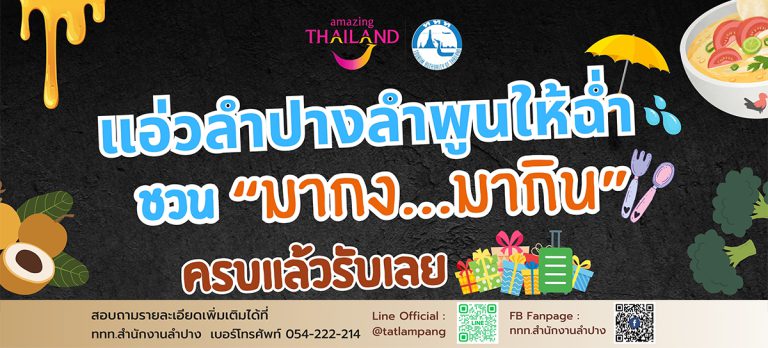 26 พ.ค. 2024 1323 ฝนนี้..มีรางวัล! ชวนร่วมกิจกรรม : แอ่วลำปางลำพูนให้ฉ่ำ “มากง…มากิน” ครบแล้วรับเลย! (ของรางวัลมากมาย)