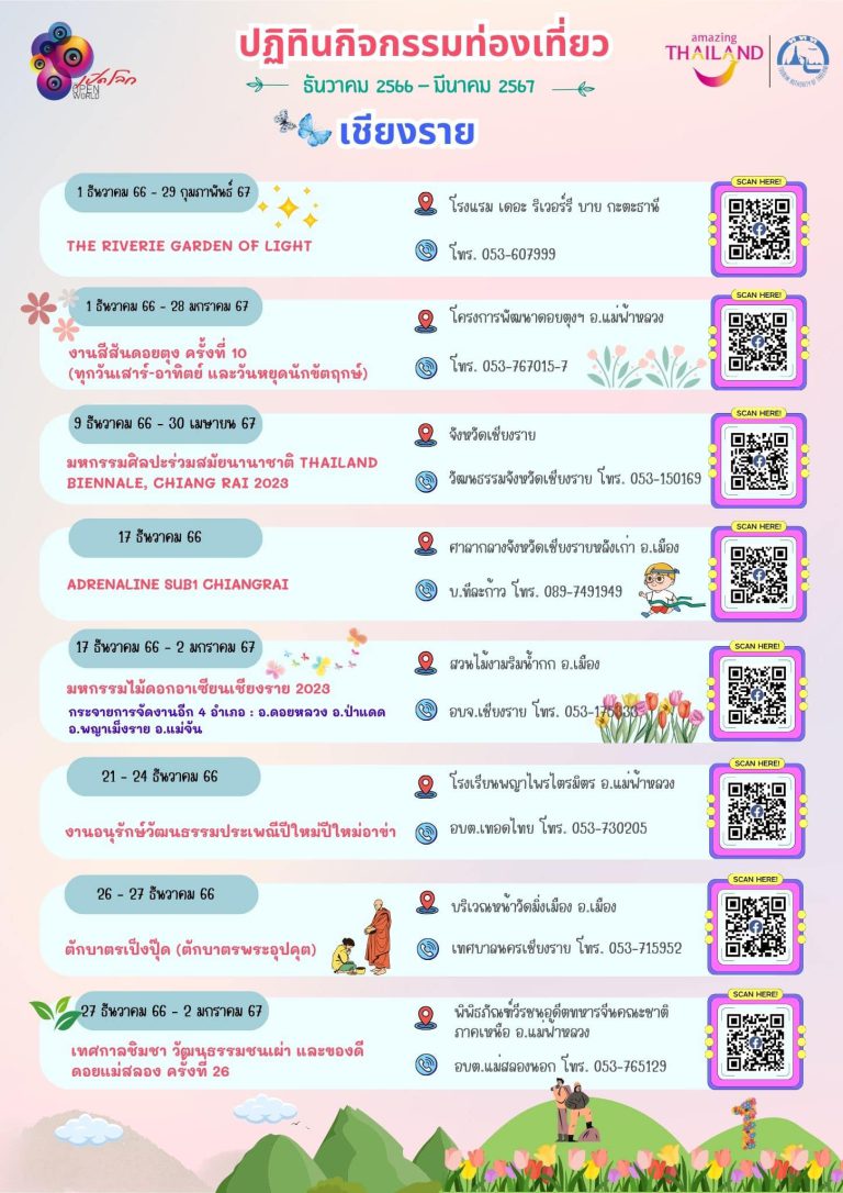 15 ธ.ค. 2023 2933 ปฏิทินท่องเที่ยวจังหวัดเชียงราย – พะเยา [ เดือนธันวาคม 2566 – มีนาคม 2567 ]