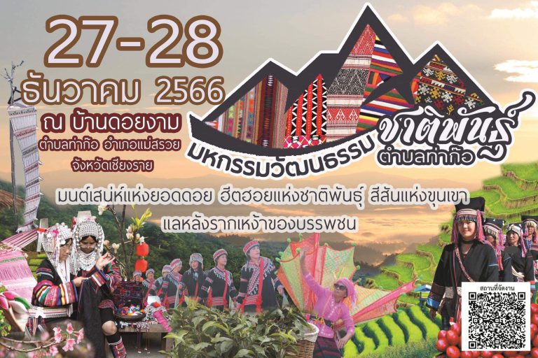 15 ธ.ค. 2023 2880 ขอเชิญเที่ยวงาน “มหกรรมวัฒนธรรมชาติพันธ์ุท่าก๊อ มนต์เสน่ห์แห่งยอดดอย ฮีตฮอตแห่งชาติพันธุ์ สีสันแห่งขุนเขา แลหลังรากเหง้าของบรรพชน”
