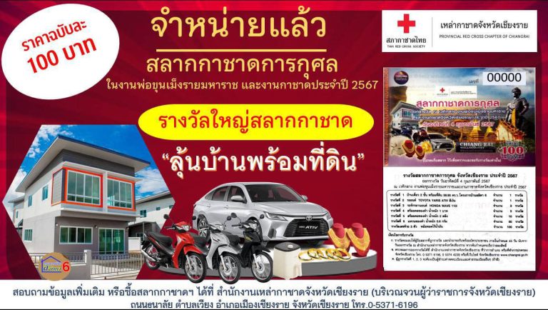 21 ธ.ค. 2023 5178 จำหน่าย “สลากกาชาดการกุศล” ในงานพ่อขุนเม็งรายมหาราช และงานกาชาดประจำปี 2567