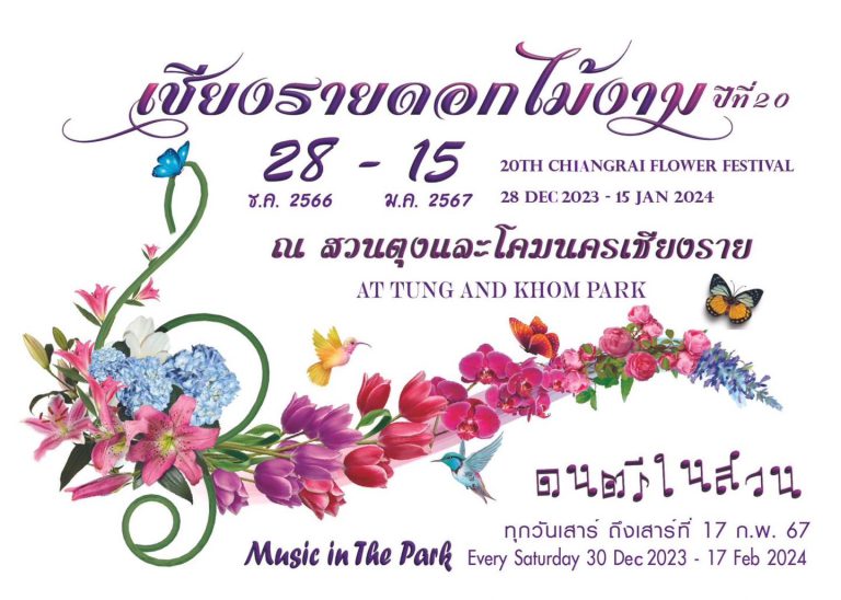 18 ธ.ค. 2023 3504 ใกล้แล้ว!! “เชียงรายดอกไม้งาม ครั้งที่ 20” งานดอกไม้สวยสุดอลังการ – กลางเมืองเชียงราย – ดนตรีในสวน | เริ่ม 28 ธ.ค. นี้